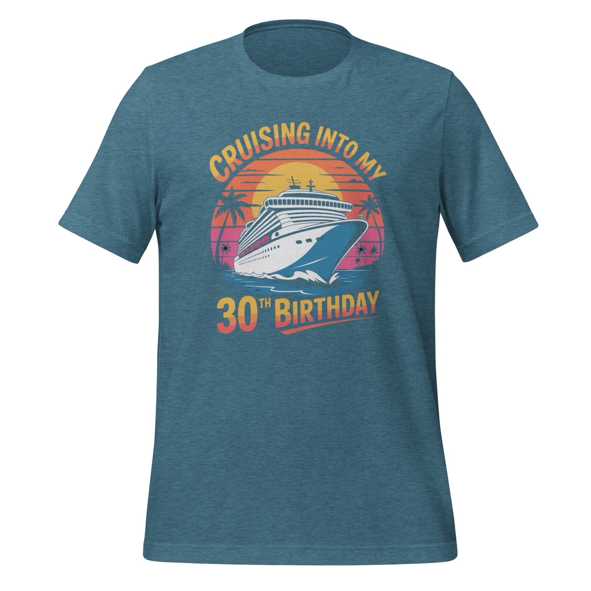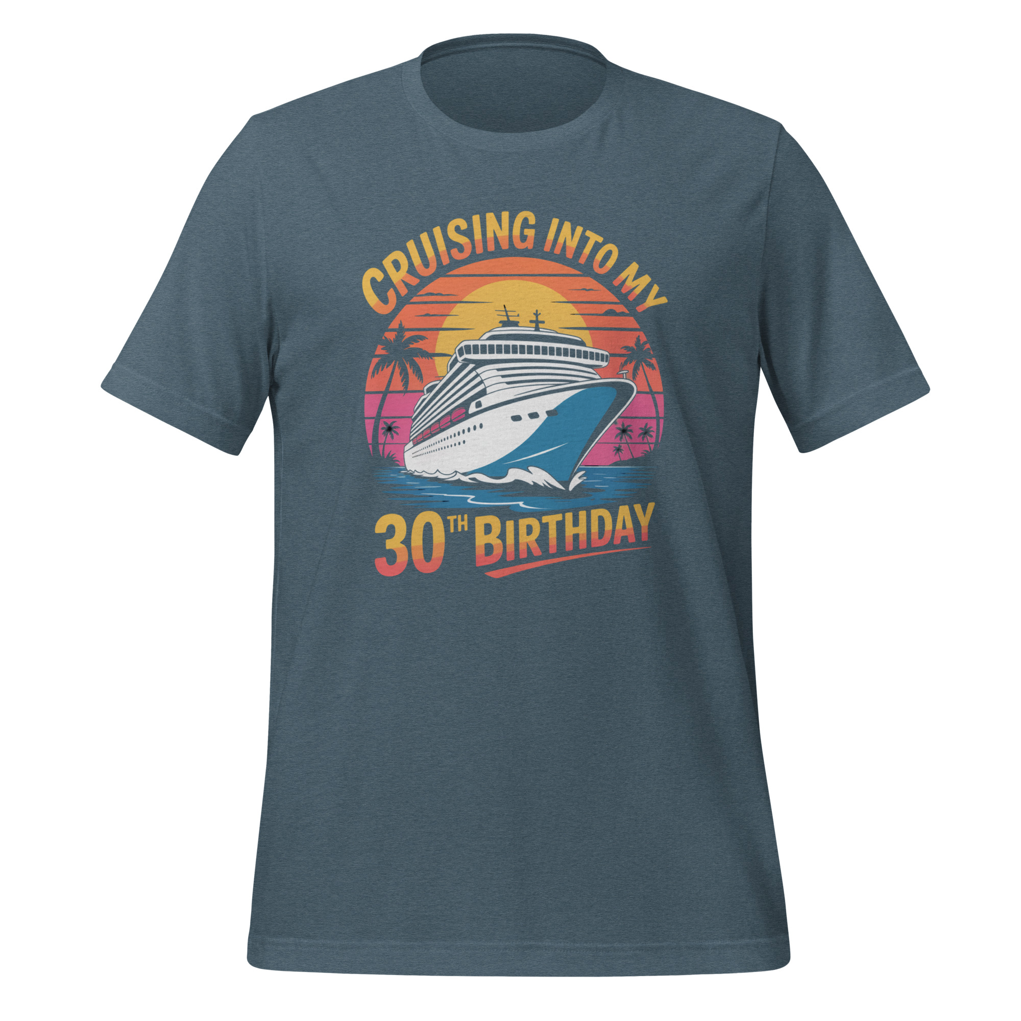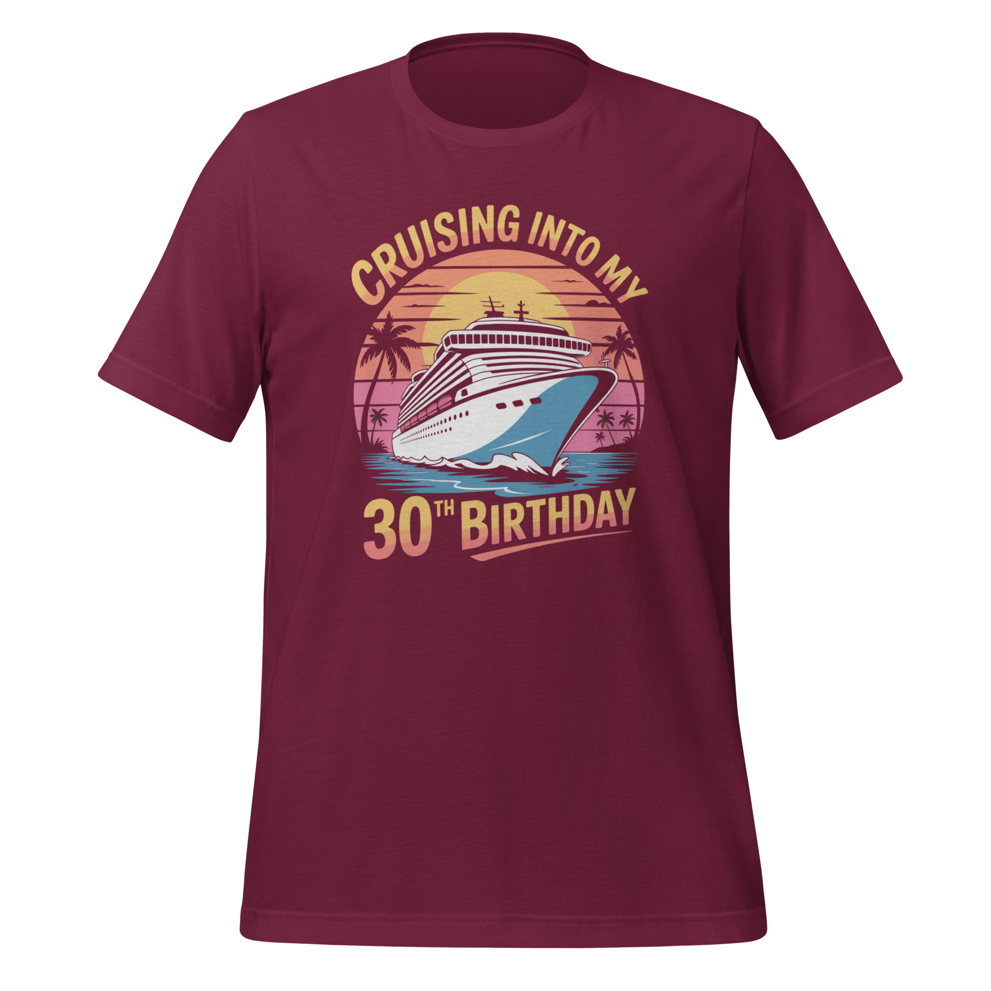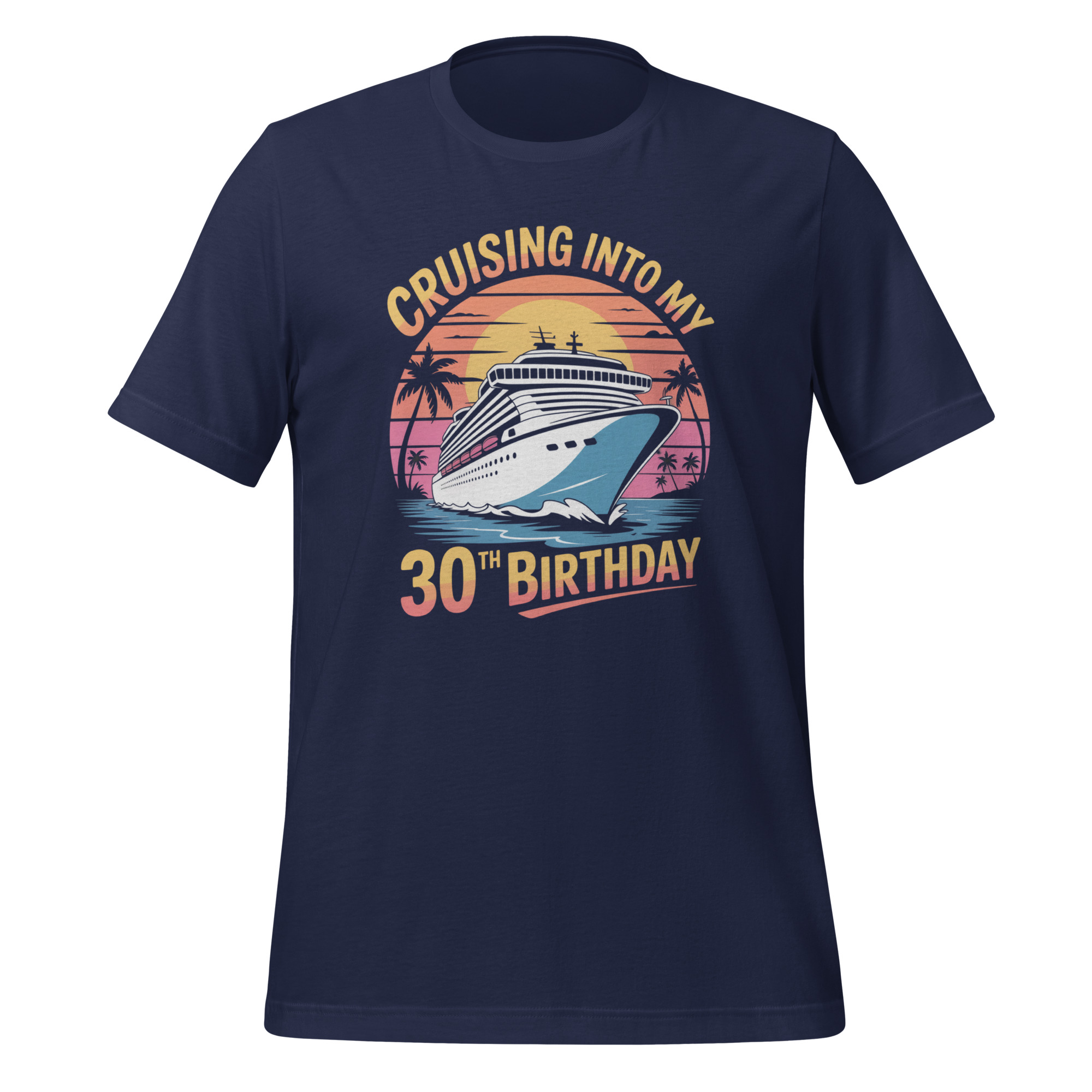 Sail into a new decade in epic style with this essential 30th birthday cruise tee! This perfect birthday gift celebrates the guest of honor as they embark on a fun-filled voyage to mark the big three-zero. Ideal for your boyfriend, girlfriend, husband, wife, or best friend hitting this fabulous milestone, the design makes them the star of the entire journey. It creates amazing photo memories during tropical excursions, lively deck parties, and romantic dinners at sea. This shirt is more than apparel—it’s a wearable souvenir of a milestone celebration shared with their favorite crew. The bold declaration ensures everyone joins the birthday fun. Make their cruise the ultimate 30th birthday surprise. Order this standout birthday cruise gift now!