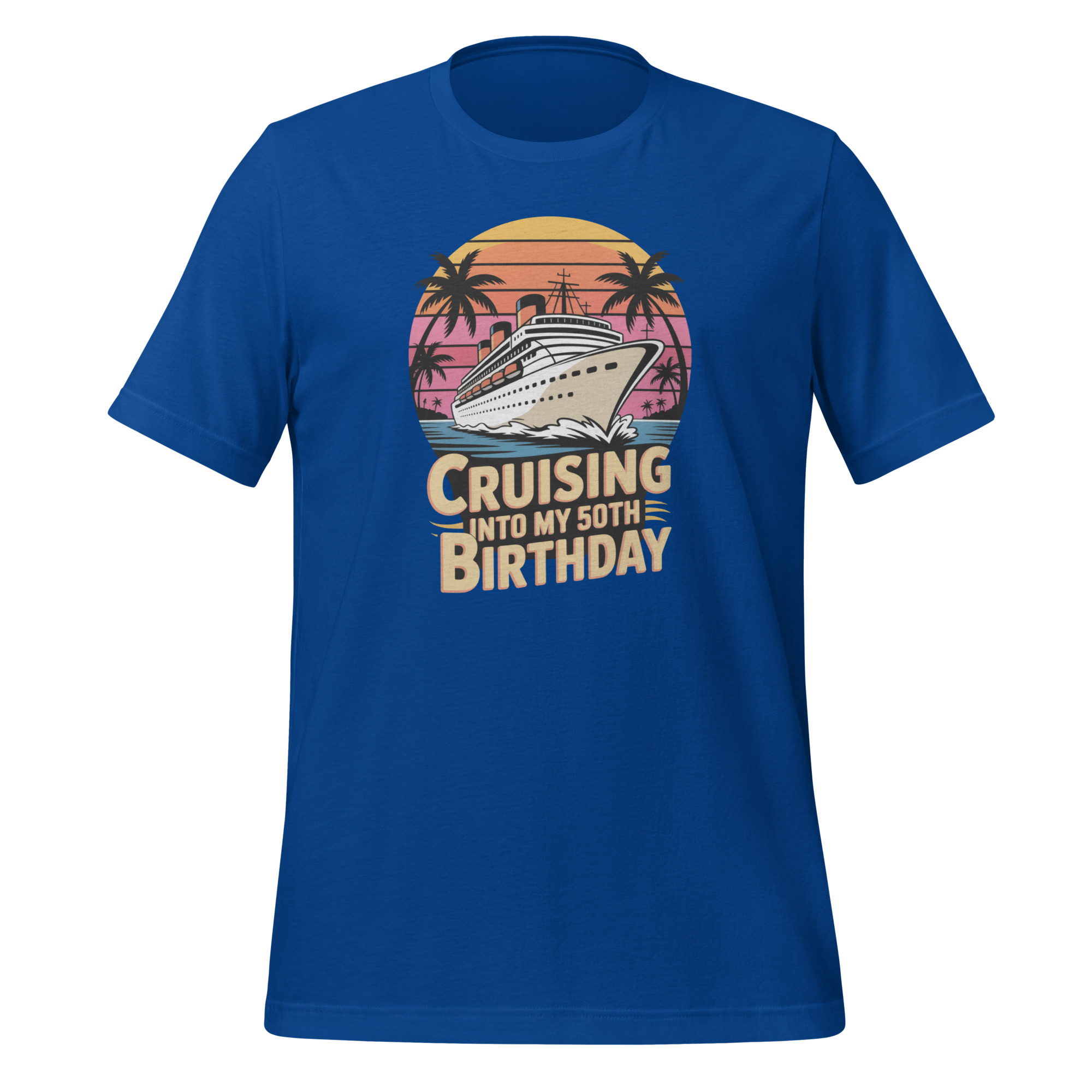 Honor the golden anniversary of birth with this essential 50th birthday cruise tee! This perfect birthday gift celebrates the guest of honor as they set sail for a milestone voyage at sea. Ideal for your husband, wife, parent, or best friend turning fifty, this design ensures they are the star of the entire journey. It creates unforgettable photo memories during tropical port days, elegant dinners, and festive onboard parties. This shirt is more than apparel—it’s a wearable souvenir of a half-century achievement shared with family and friends. The bold statement makes every moment part of the grand celebration. Give the gift of recognition and fun for this landmark birthday adventure. Order this standout 50th birthday cruise gift now!