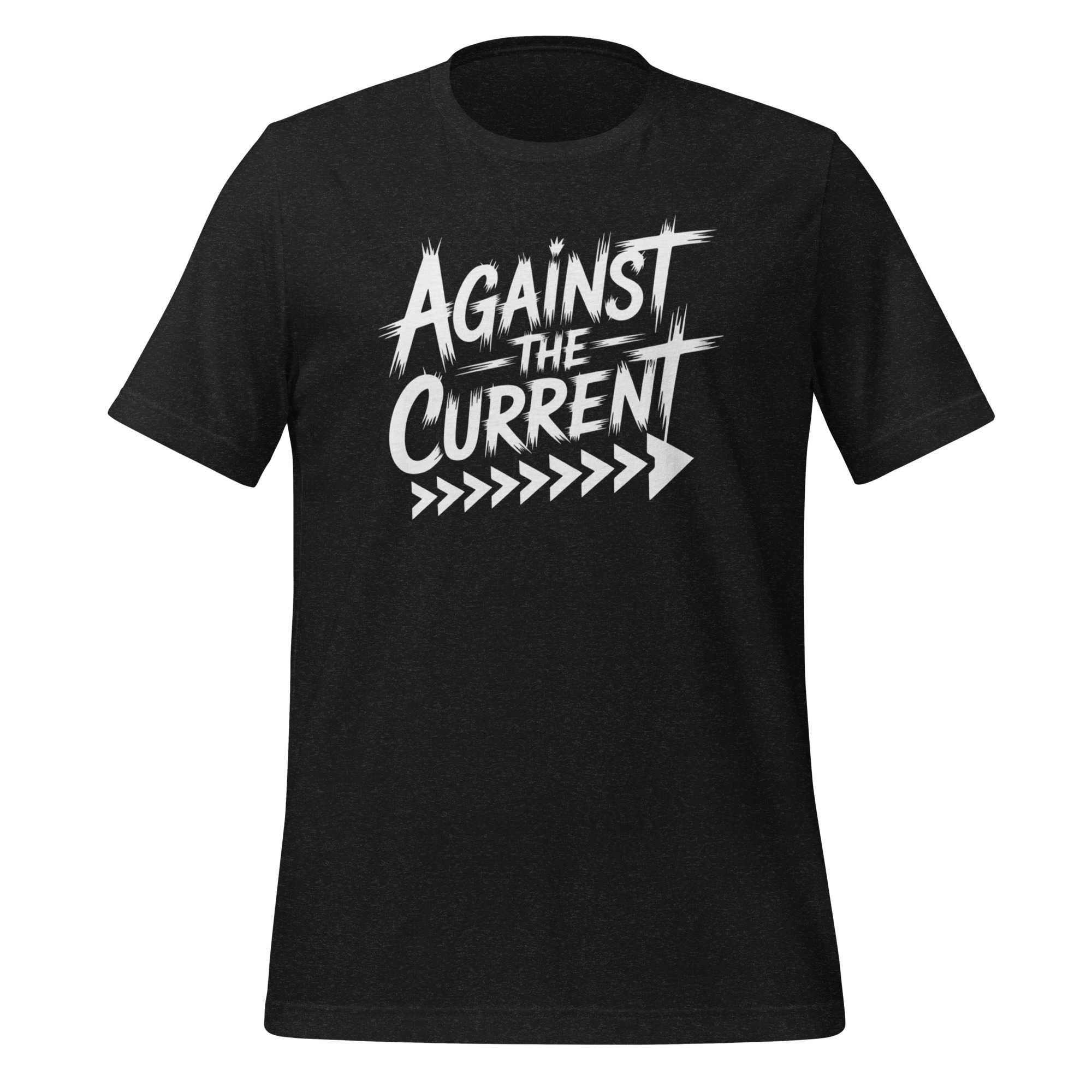 The Against the Current tee features a bold, minimalist statement design that embodies independent thinking and a reflective critique of modern norms. The phrase evokes standing apart from trends, popular opinion, or conventional systems, highlighting a philosophical perspective on leadership, authority, and culture.