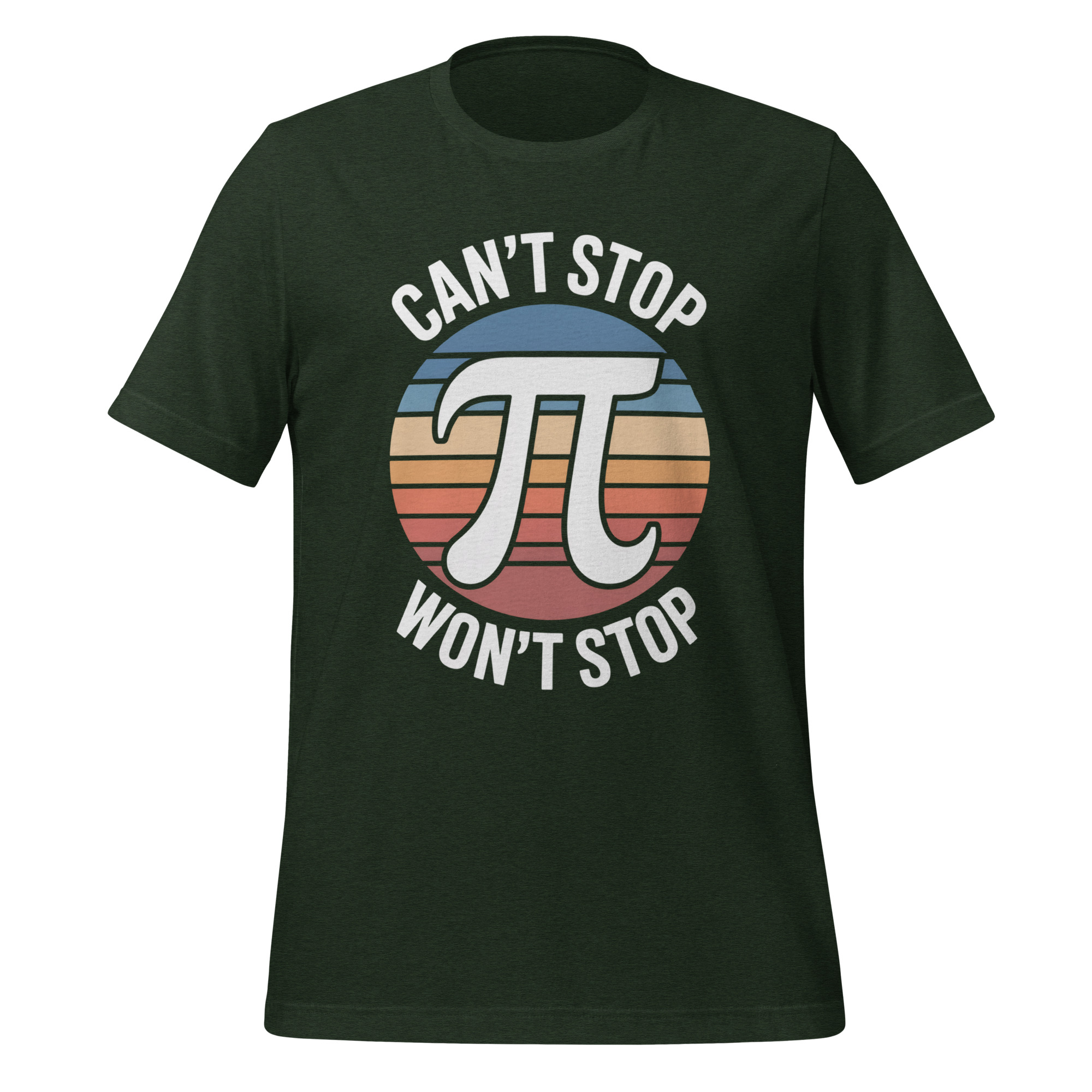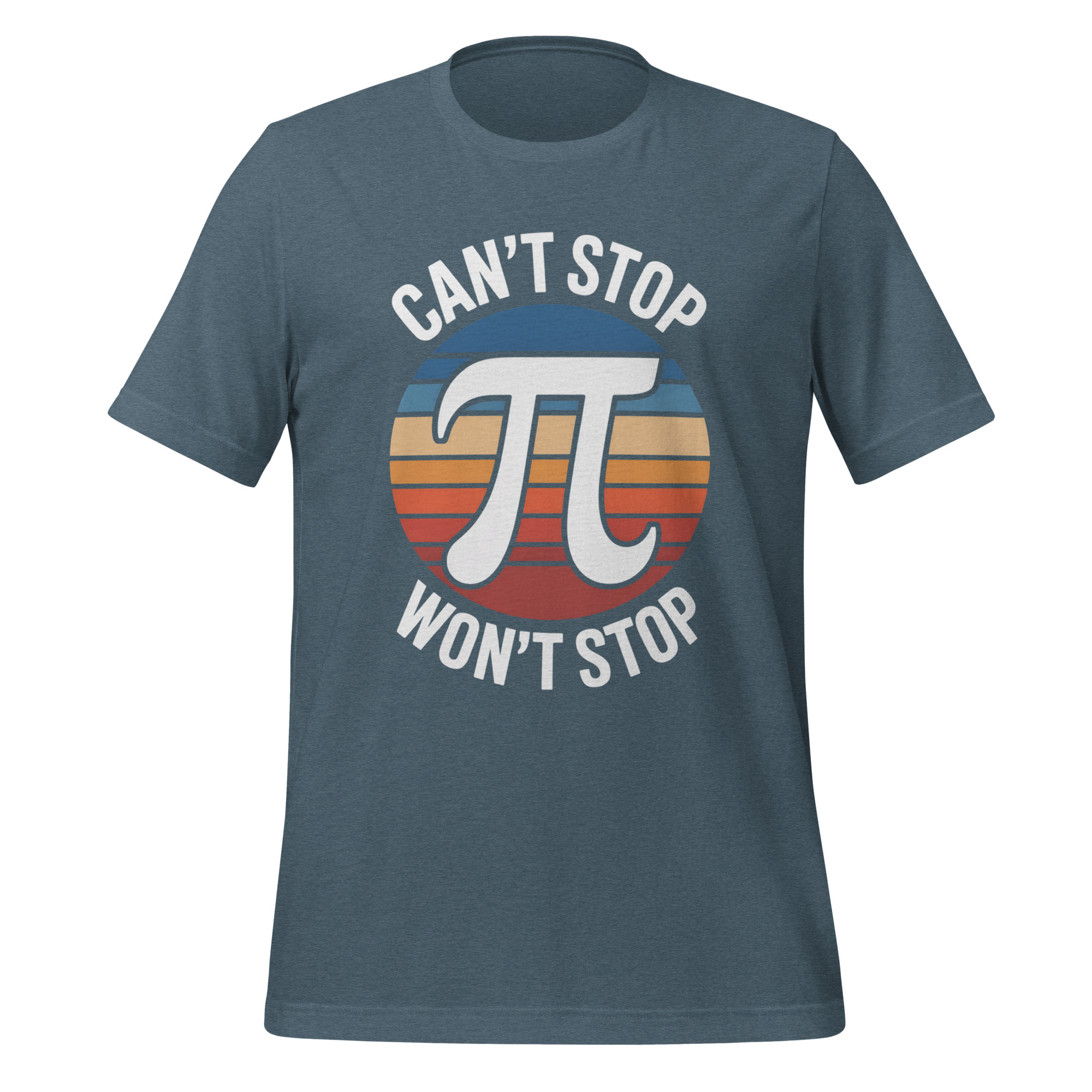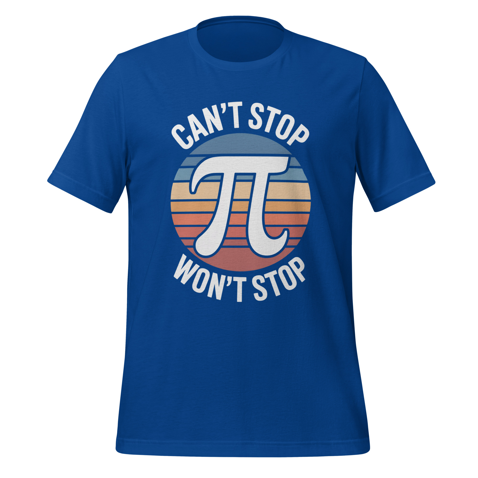 Show your relentless dedication to numbers. Order your Can’t Stop Won’t Stop Pi Day t-shirt today!