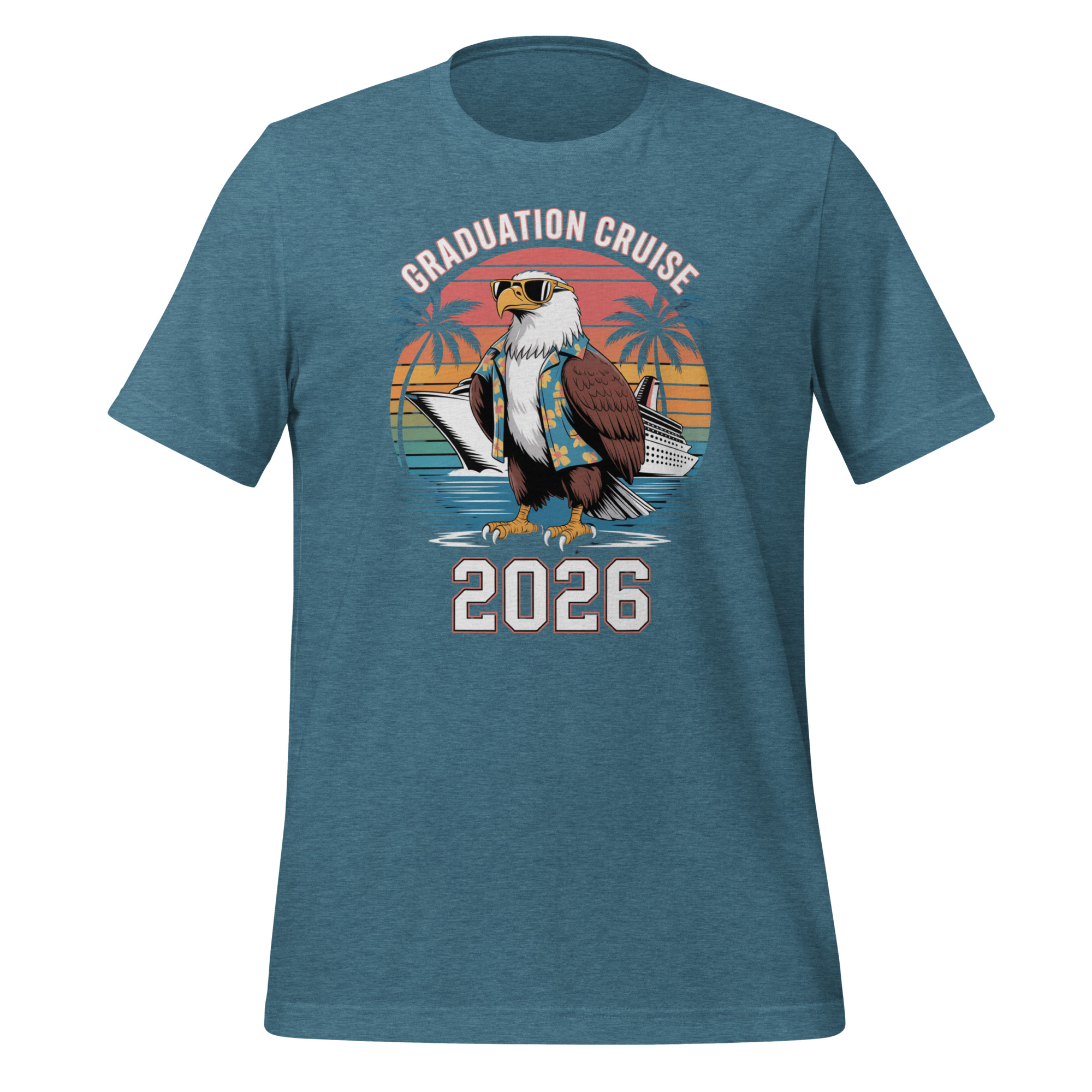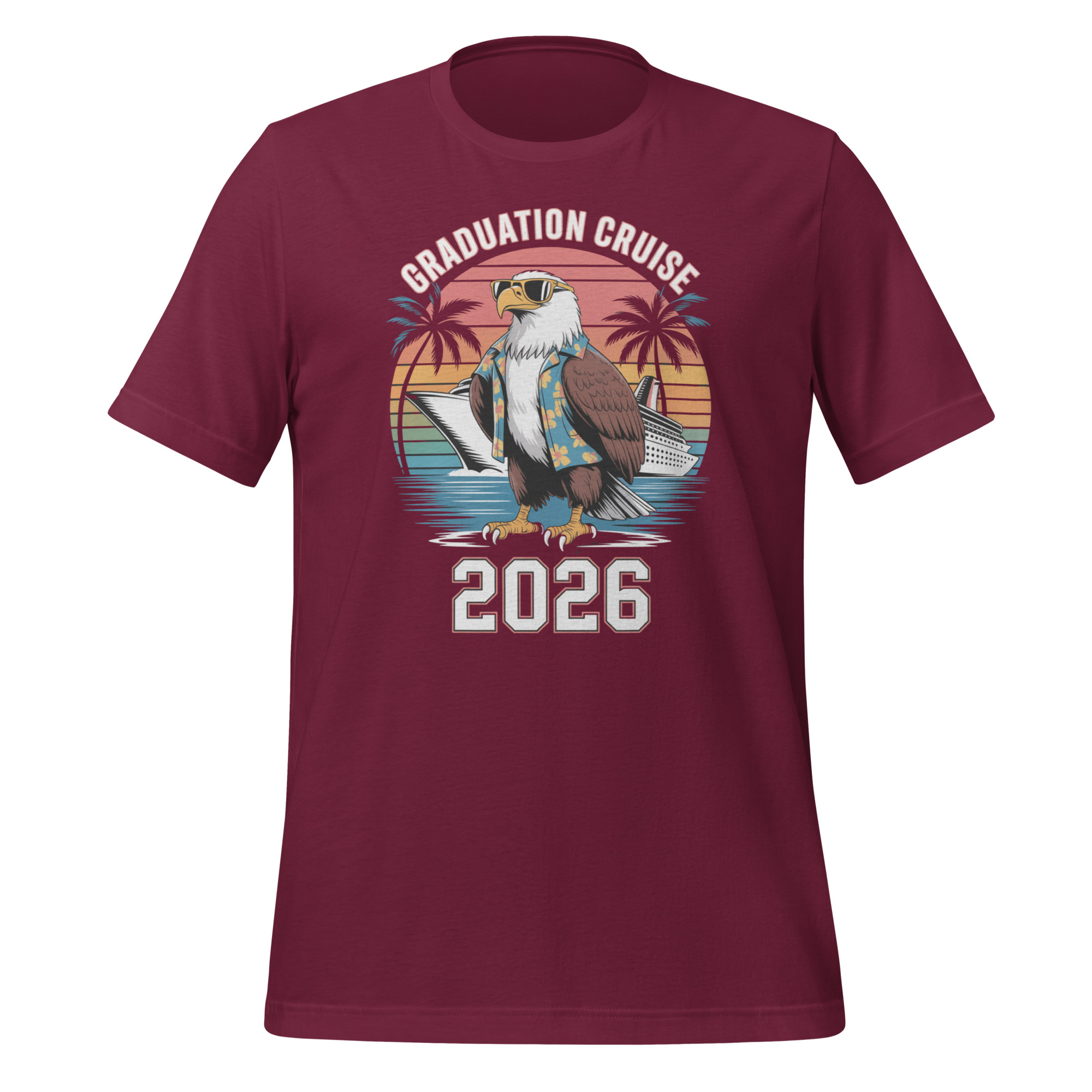 Soar into celebration with these majestic 2026 eagle graduation cruise matching shirts! Honor your graduate’s achievements and lofty goals with a custom design perfect for the family and friend crew joining this high-seas adventure. These bold, coordinating tees are ideal for high school or college graduates ready to take flight into their next chapter with pride and spirit. Whether you’re a school with an eagle mascot or simply admire its symbolism of freedom and vision, these shirts make your grad feel celebrated and your group look unforgettable onboard and in port. It’s more than apparel—it’s a wearable tribute to their soaring success and the bright future ahead. Ready to commemorate this milestone with powerful style? Click to customize with the grad’s name, year, or school and order your matching eagle crew sets today!
