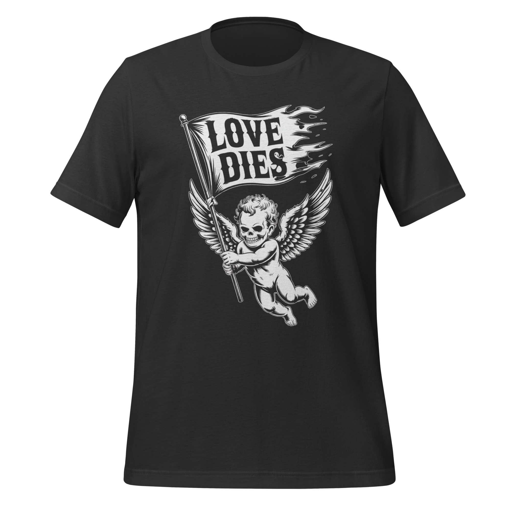 Embrace dark romance with this striking Zombie Cupid goth Valentine tee, where love meets the afterlife. This unique design is perfect for goth lovers, horror fans, and anyone who prefers their Valentine’s Day with a macabre twist. Featuring a haunting zombie cupid and the bold phrase “Love Dies,” it’s an ideal gift for your boyfriend, girlfriend, or alternative partner who adores dark humor and eerie aesthetics. Great for a morbid Valentine’s surprise, a creepy couples shirt, or year-round wear for fans of spooky apparel. This shirt blends gothic art with zombie horror for a statement piece that’s both romantic and rebellious. Ready to celebrate love in the shadows? Click to customize and order your hauntingly romantic goth tee today!